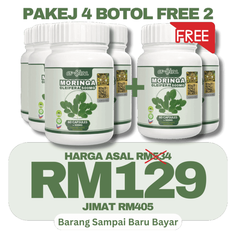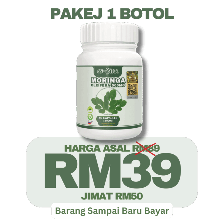 1 botol Moringa Oleifera as-Sina adalah untuk 30 hari pengunaan.
