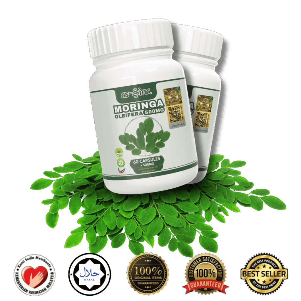Kapsul Moringa as-Sina dikilangkan mengikut standard terbaik yang telah ditetapkan untuk menjaga kualiti dan khasiatnya. Kapsul Moringa as-Sina padat dengan Protein, Asid Amino penting, 27 jenis Vitamin, 46 jenis antioksidan, Bebas Gluten, Tinggi Serat, Folat, Fiber dan Phytonutrients. Ianya sangat baik dalam membantu merawat dan mencegah masalah 3 serangkai, sendi, gout dan masalah perut.