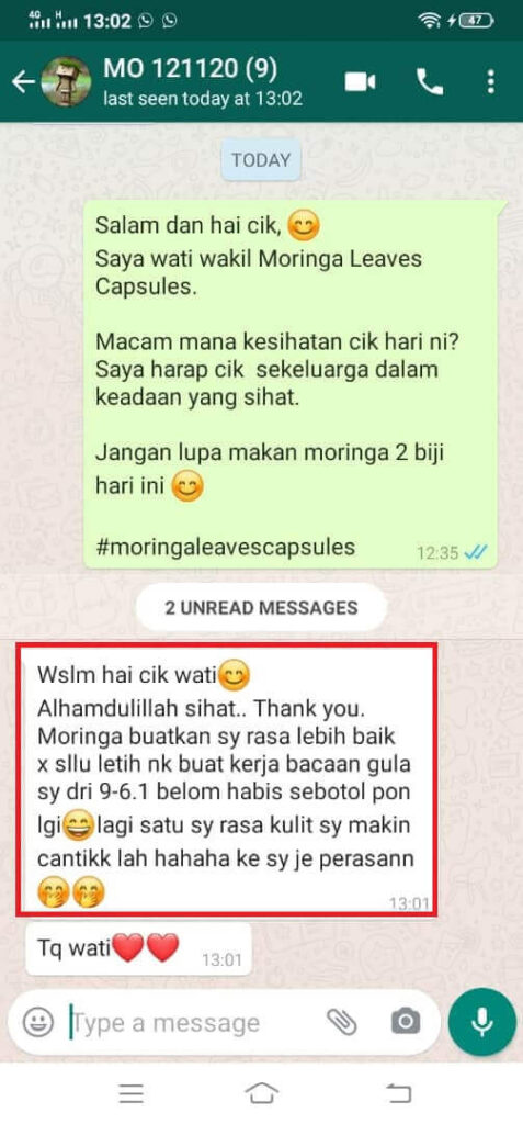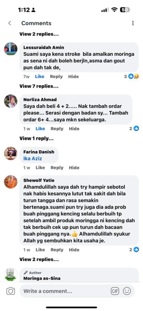 Anda dapat jaminan sekuat ini kerana Moringa Oleifera as-Sina sudah berjaya membantu ramai orang yang mempunyai masalah SAMA SEPERTI ANDA dan ia terbukti berkesan.